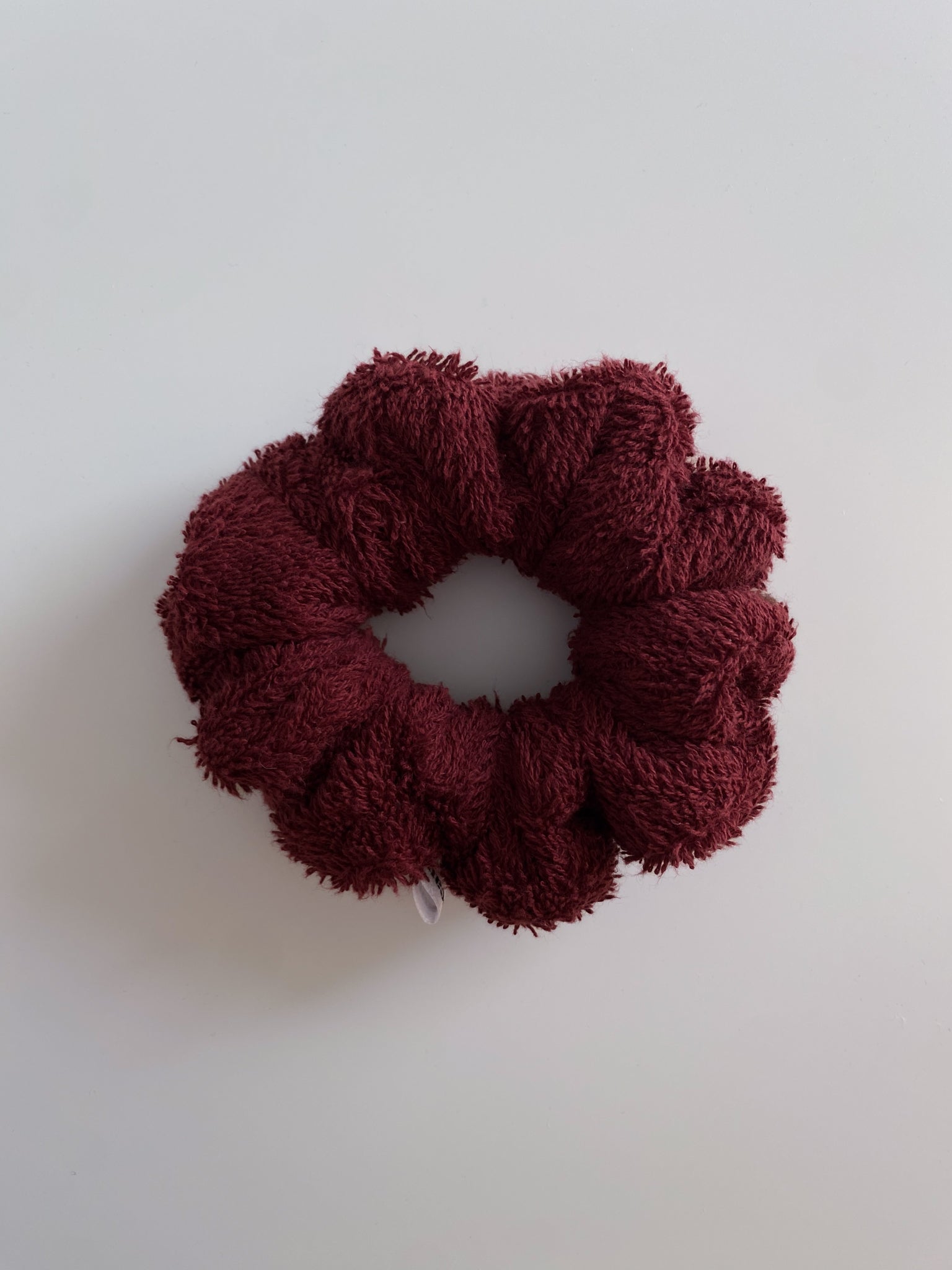 Composition Lux Deep Burgundy scrunchie: 90% cotton and 10% polyester